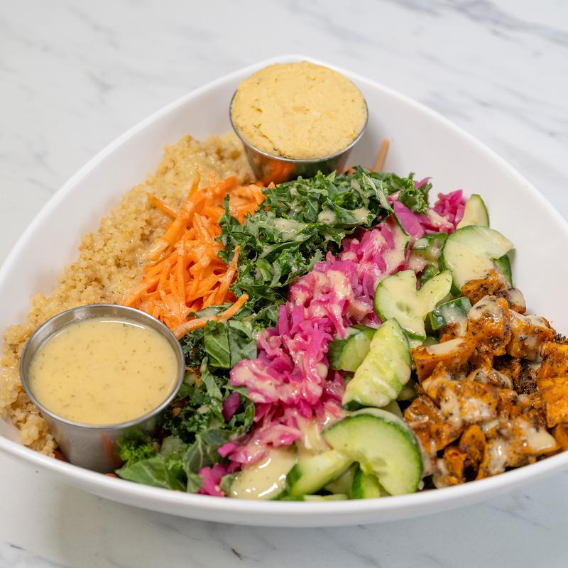 Expect globally inspired comfort alongside lighter picks: stacked sandwiches, saucy tacos, crisp entree salads, and soul‑warming soups. We finish with signature sauces, like balsamic vinaigrette, arugula pesto vinaigrette, avocado‑lime vinaigrette, lemon‑dill vinaigrette, and garlic aioli, also available in take‑home jars.